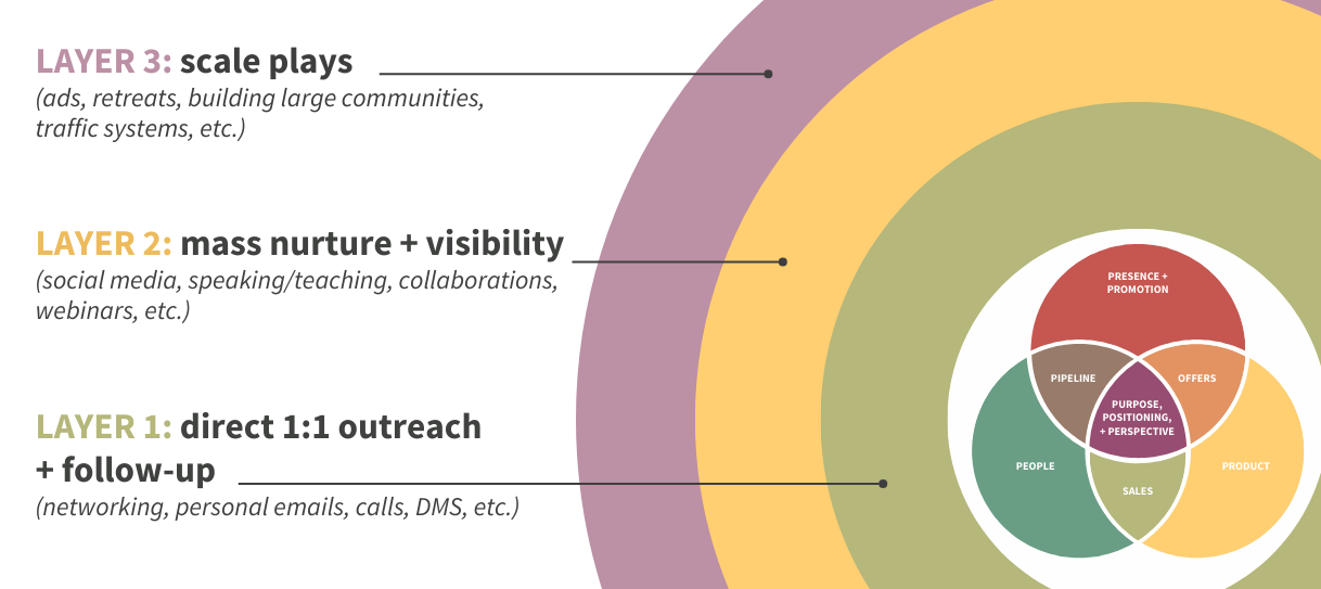 Layer 2 = mass nurture and visibility will amplify your reach but pointless without Layer 1.